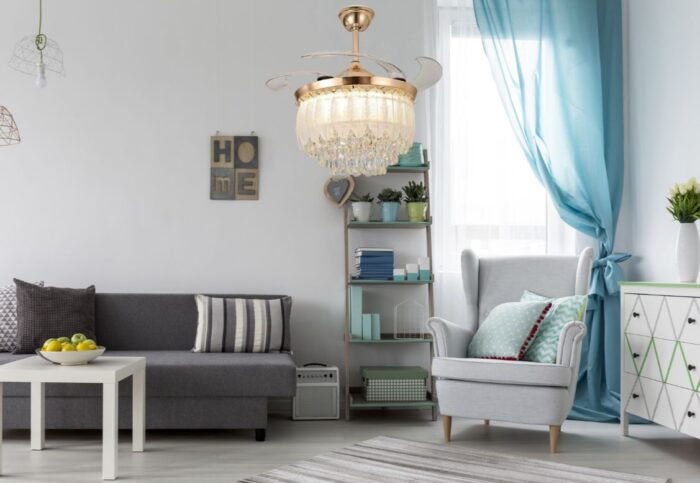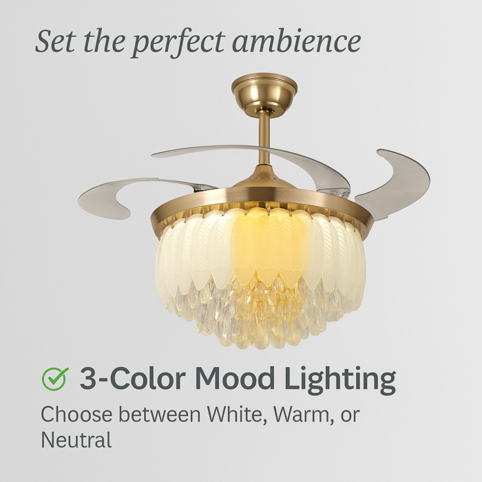 PRAMIE TIARA DESIGNER FAN 48” Retractable Blade Ceiling Fan with LED Light & Remote Control